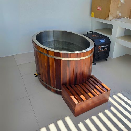 The Apollo Cold Plunge is designed for those who seek the pinnacle of wellness and relaxation. Crafted from Grade A Red Cedar wood and Stainless Steel 304, the Apollo combines elegance, durability, and exceptional performance. Its sleek oval design provides both style and comfort, making it the perfect addition to any spa, wellness center, or personal retreat.