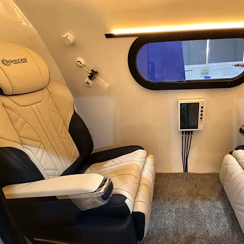 Spacious dual-seating chamber with high-performance oxygen and smart control systems.